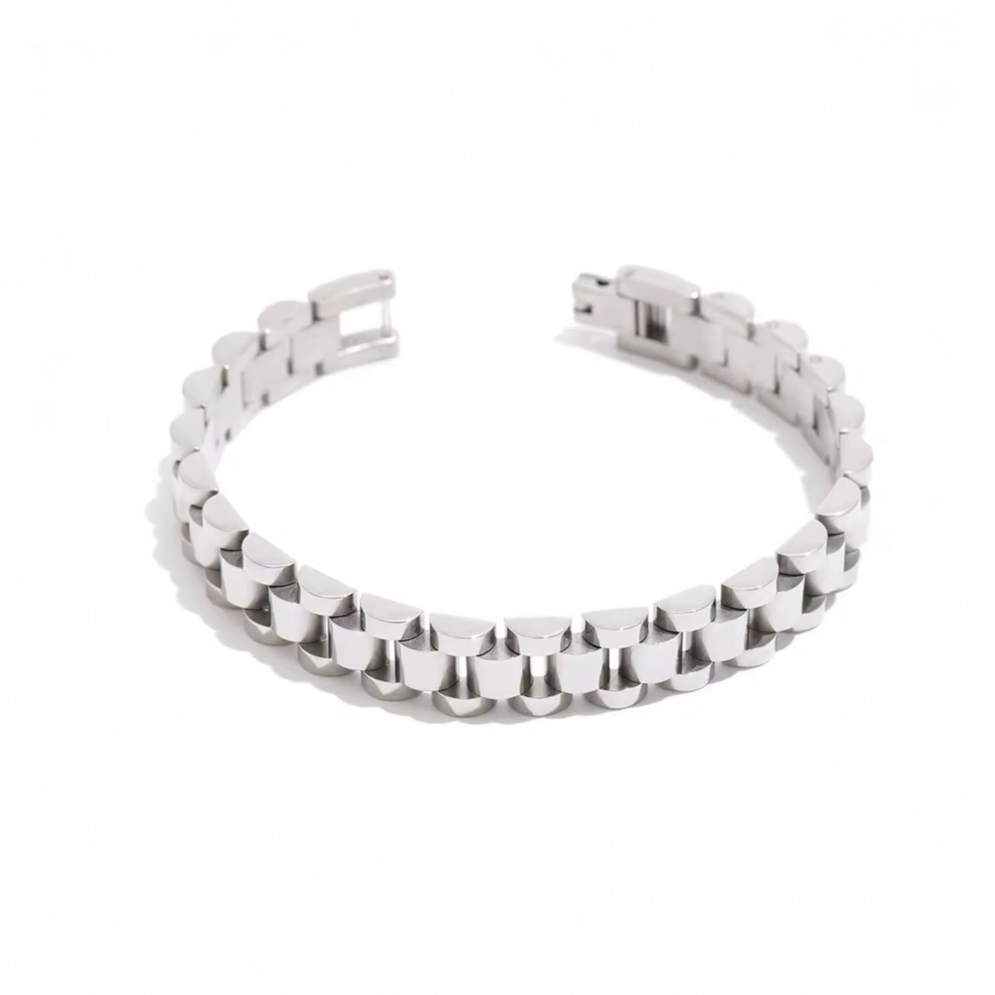 Bold elegance, redefined. Modern edge with timeless polish in a design that speaks for itself. Oversized links plated in real gold or silver.
