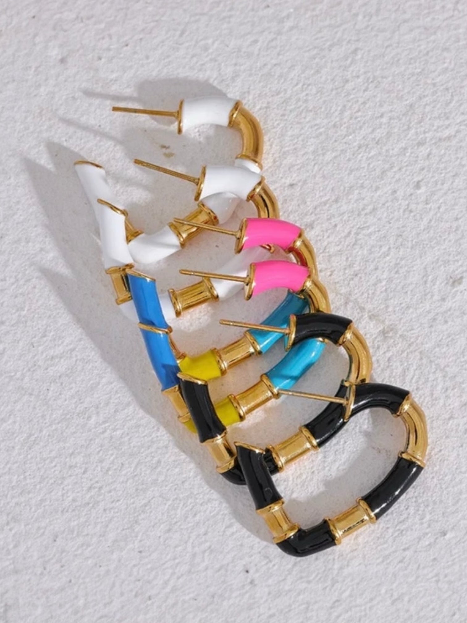 Designed for women who don’t overcomplicate confidence. The Love Simply Hoops take a heart silhouette and refine it into something clean, composed, and intentional. Finished in high-gloss enamel with polished gold accents, they bring color with control — expressive, but never excessive.